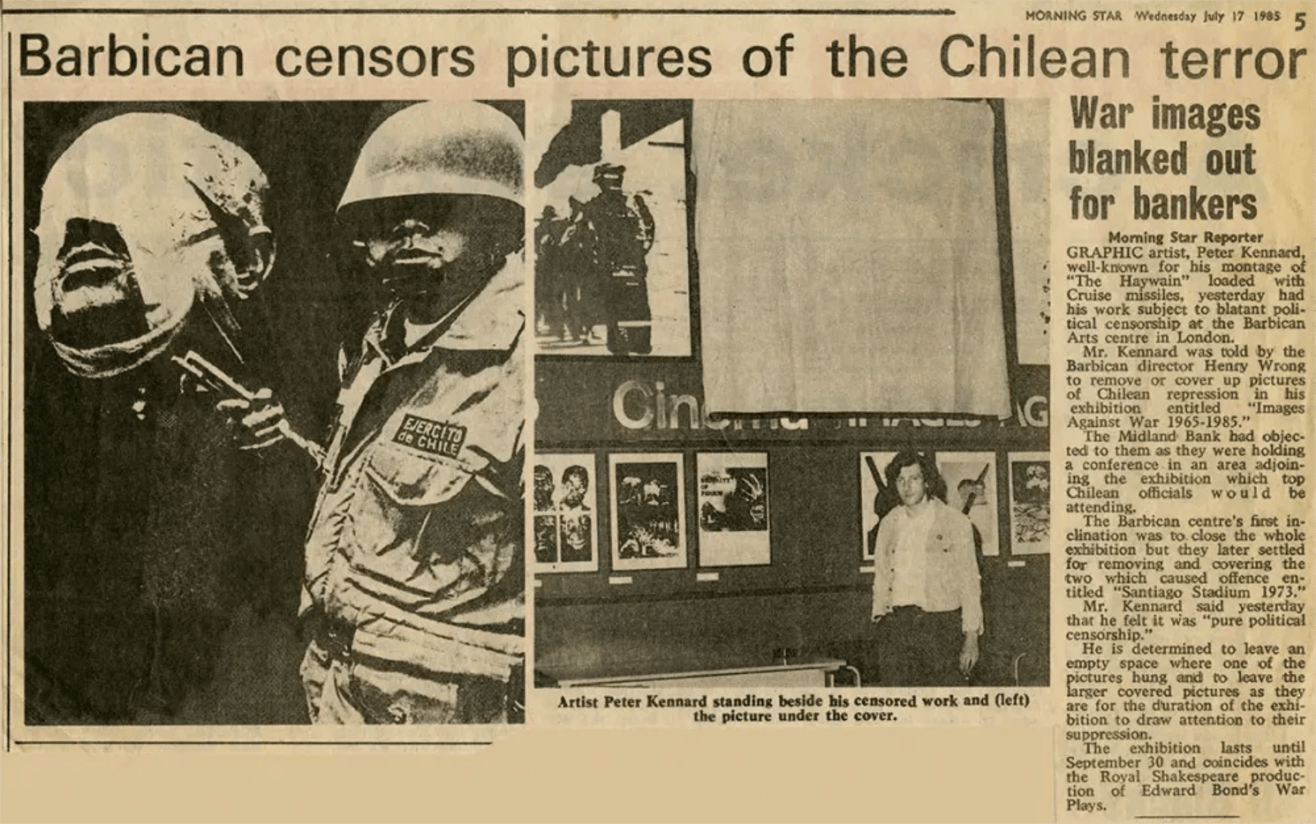 Peter Kennard recounts how the Barbican censored his work to placate Chilean finance officials and British bankers.