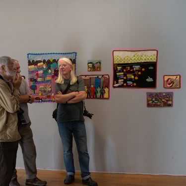 The collaboration was initiated by Gloria Mequeles, a Chilean exile, who brought an archive of arpilleras and the impetus to reawaken Peter Kennard's touring show, A Document on Chile. The exhibition juxtaposed Kennard’s 1970s photomontages with arpilleras—hand-sewn textile works made by Chilean women during the dictatorship—alongside documentary photography of the mass protests of 2019–2022.